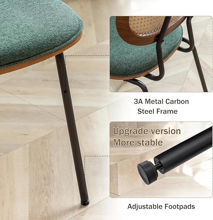Rattan Dining Chairs Set of 4, Mid Century Modern Dining Chairs with Cane Back for Kitchen Dining Room, 19 Inch Fabric Green