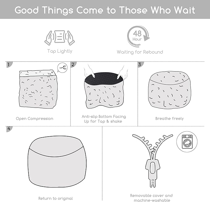 - 【REMOVABLE DESIGN】- For convenience and ease of use, this pouf ottoman comes stuffed with memory foam chunk pouf filler. Meanwhile, the cover can be easily set with the large round zipper on the bottom after cleaning.