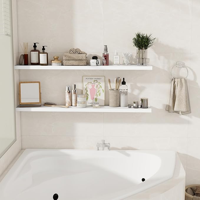 - Multi-Scene & Functional: These versatile shelves are great for any room. Use them in the bathroom for beauty products or aromatherapy, in the bedroom for books and personal items, or in the kitchen for spices and jars. They also make a stylish display shelf in the living room for photos, trophies, or collectibles. Perfect as floating bookshelves, over-the-toilet storage, kitchen shelves, or wall displays throughout your home