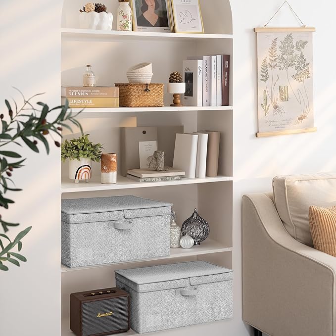 GRANNY SAYS Large Storage Bins with Lids, Decorative Storage Box for Shelves, Fabric Storage Bins Foldable, Storage Basket for Clothes, Keepsake Box, Jumbo, Gray, 2-Pack