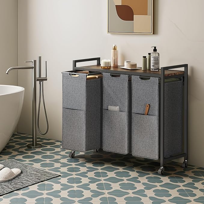 - Efficient Divided Storage: With 3 spacious compartments, each holding up to 11.5 gallons (43.4L), this laundry sorter boasts a total capacity of 34.5 gallons (130L), so you can easily organize your laundry by type and separate the lights and darks