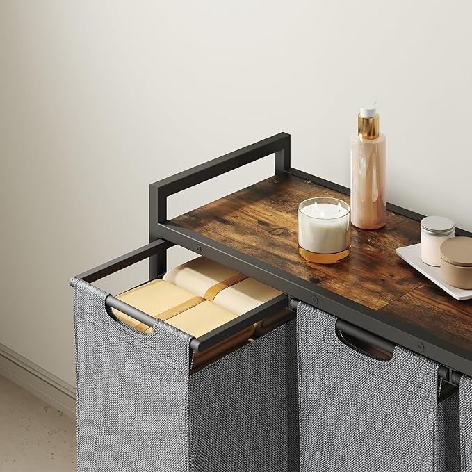 HOOBRO Laundry Sorter 3 Section, Laundry Hamper with Wheels, 3 × 11.5 Gal (43.4L), Rolling Laundry Basket, Pull-Out and Removable Oxford Fabric Laundry Bags, Rustic Brown and Grey BFG76XY01