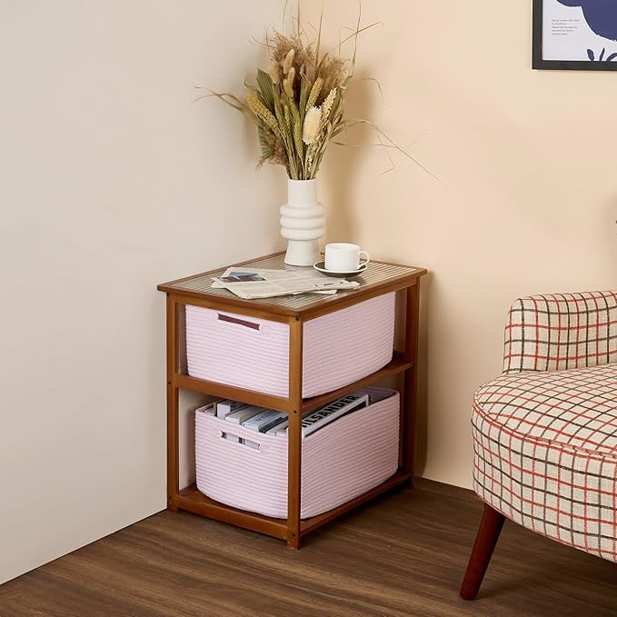 - [ Stylish Design ]: With a modern minimalist design, our woven rope baskets are a chic alternative to traditional rattan. They’re perfect for closets, changing table organizer, and cube shelves, adding warmth and texture to any room while tackling home clutter