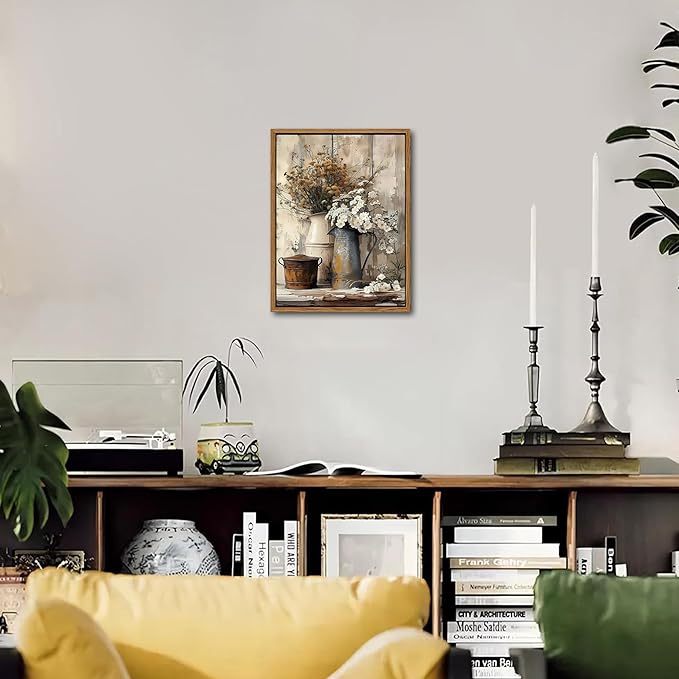 - Framed Canvas Wall Art: This farmhouse-inspired vintage wall art features charming daisy florals set against a rustic wood grain background. A perfect blend of nature and nostalgia, it brings warmth and coziness to your living room, bedroom, bathroom, or any rustic home setting.