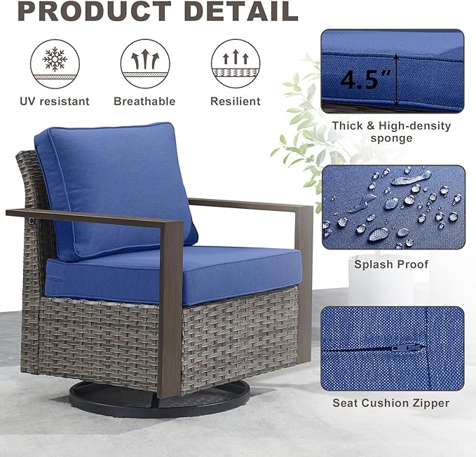 - Fun 360° Swivel and Gliding Motion:Designed for relaxation, our resin wicker patio glider swivel chairs offer both a gentle rocking motion and a full 360-degree swivel. Effortlessly change your view without getting up; enjoy the versatility of movement while remaining comfortably seated. Perfect for those lazy sunny days