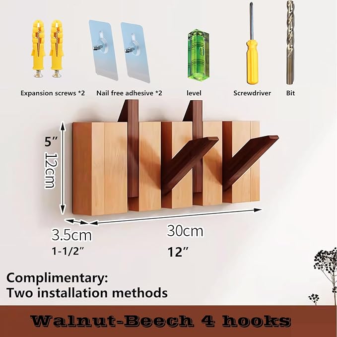 - Handmade Natural Wood: This wooden hanger wall hanging is made of high-quality beech wood, hand polished and painted, known for its durability and charming texture patterns. It is sturdy and durable, capable of withstanding 50lb. The wood color and texture decoration style, dark and light colors look like a row of piano keys, practical and beautiful