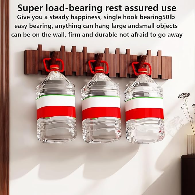 - Handmade Natural Wood: This wooden hanger wall hanging is made of high-quality beech wood, hand polished and painted, known for its durability and charming texture patterns. It is sturdy and durable, capable of withstanding 50lb. The wood color and texture decoration style, dark and light colors look like a row of piano keys, practical and beautiful