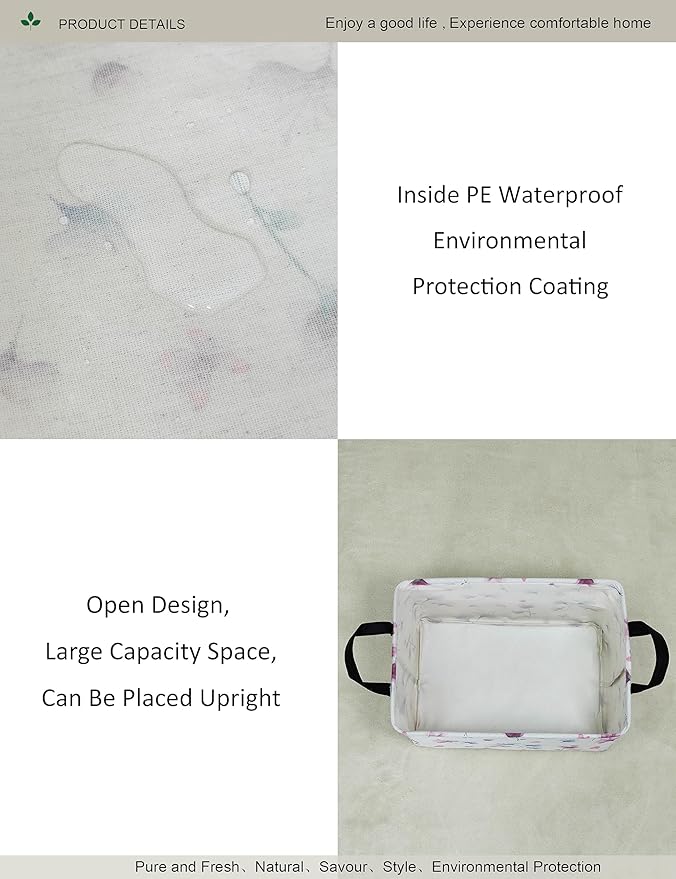 Rectangular Folding Laundry Basket,waterproof Canvas Basket,gift basket,Suitable for children's room,Office,Clothes,Toys Storage(Watermark flower)