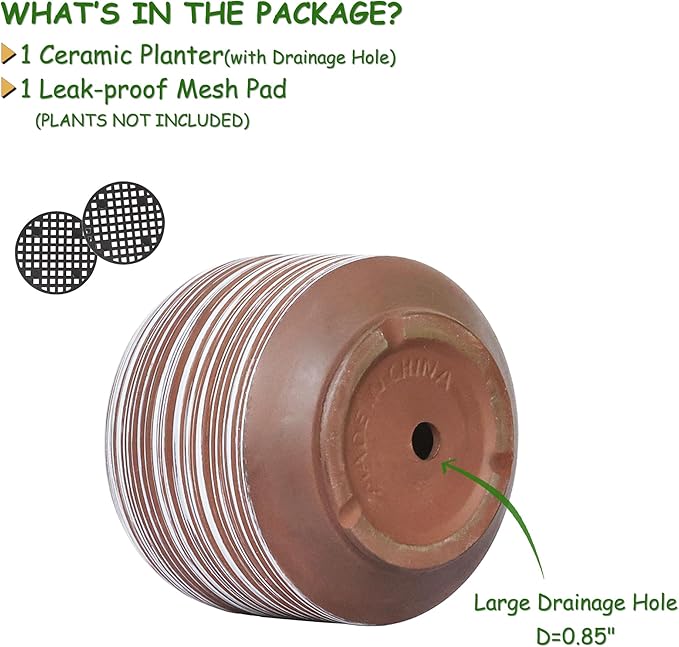 - 【Durable Ceramic Build, Weather-Ready】:Crafted from high-temperature ceramic that resists fading and cracking. Ideal for outdoor planter pots or indoor flower pots with drainage for long-term plant care.