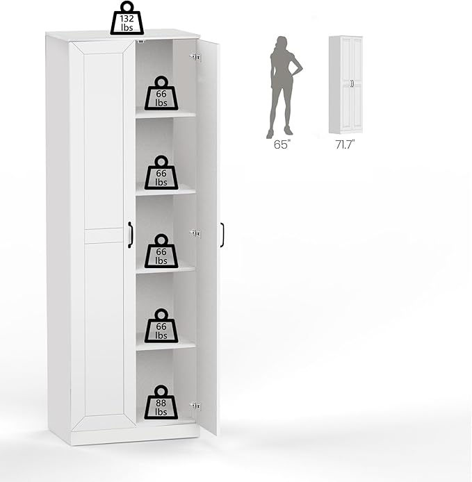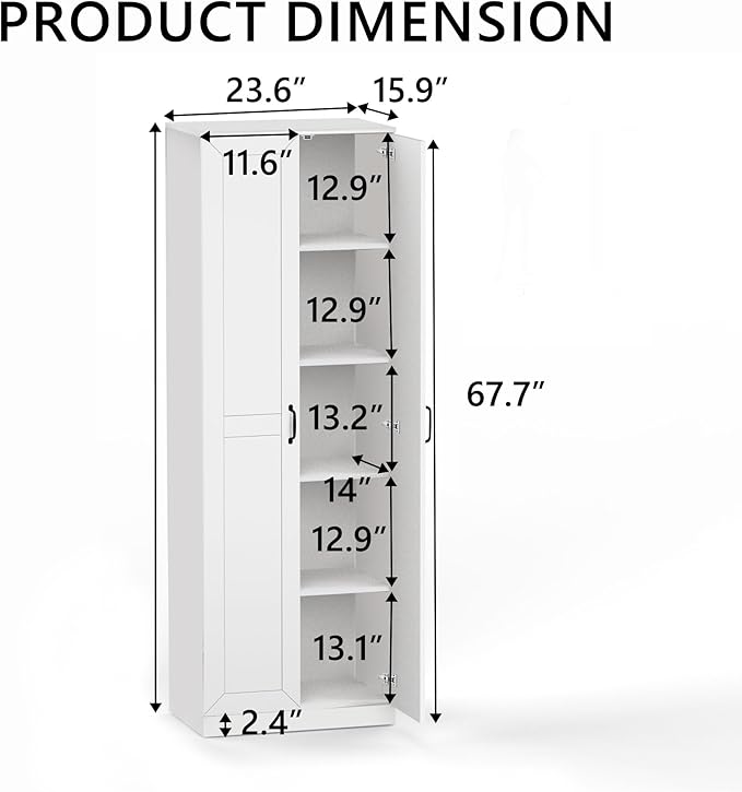 - User-Friendly Installation: 71" HĂ—23.6"WĂ—15.7" D. With detailed assembly instructions and video tutorials included, setting up this kitchen storage cabinet is a breeze. The cabinet has a reliable anti-tipping mechanism to ensure enhanced safety and prevent potential dangers, It is friendly to children and pets