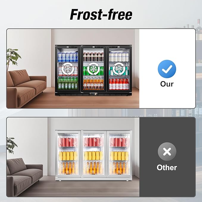 - SAFETY LOCK & SELF-CLOSING DOOR: The back bar beer fridge is equipped with a safety lock and self-closing door mechanism, this built-in drink refrigerator ensures your beverages are kept secure while minimizing noise and inconvenience. It’s the perfect blend of style, security, and quiet operation, making it a great addition to your home, bar, or outdoor space.