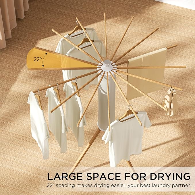 - 【Efficient & Stylish】Every home needs the thoughtful, multipurpose tripod clothes drying rack since it is both practical and fashionable. It is stable because to its tripod construction, and it is easy to fold up for storage; A real collaborator when it comes to getting laundry.