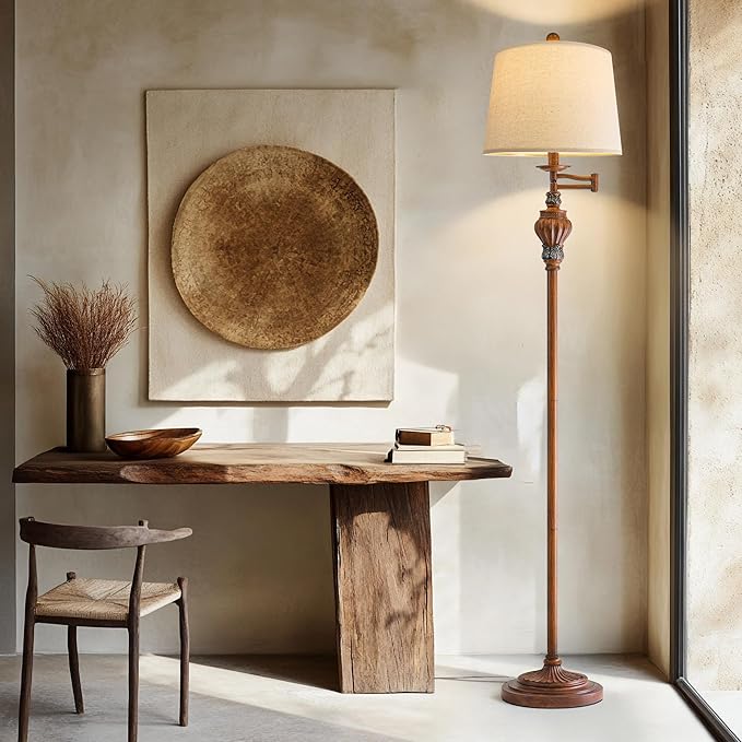 - Practical 350° Adjustable Swing Arm: The farmhouse floor lamp for bedroom allowing you to easily direct the light where you need it most. This bedside lamp provides flexibility and convenience in illuminating different areas of your room