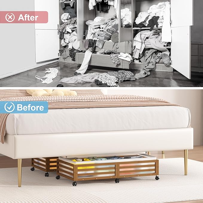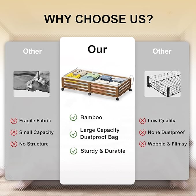 - 【360° Rotating Wheels】Features detachable wheels for easy sliding in and out from under the bed; convenient access in tight spaces