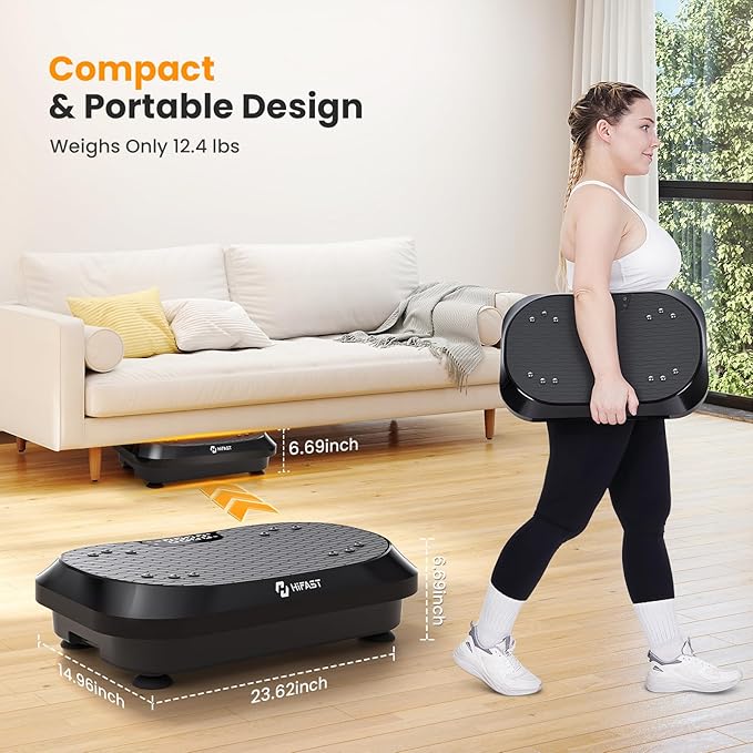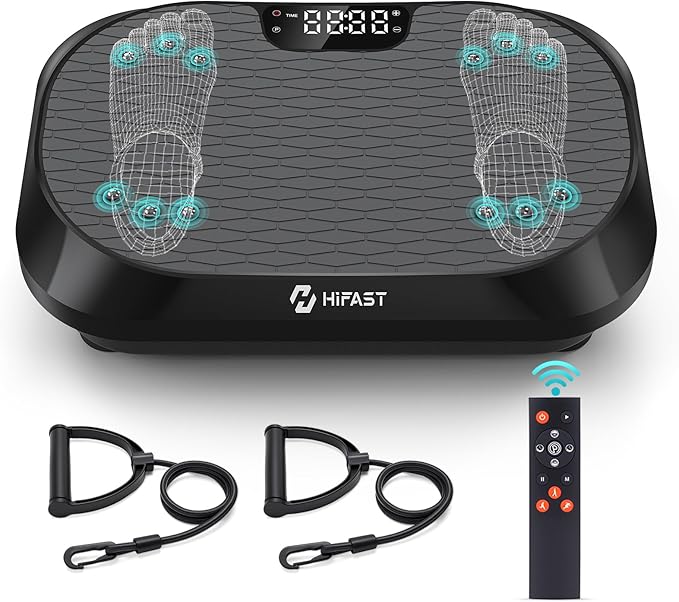 - 【Fitness starts with Hifast】Includes a vibration plate, resistance bands, remote control, 1.8m (6ft) power cord, and user manual. Every vibration plate is Quality checked before shipping to ensure reliable quality and safe use. Hifast is committed to being your trusted home fitness partner, supporting you on your journey to a healthier, more active lifestyle