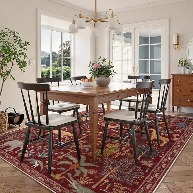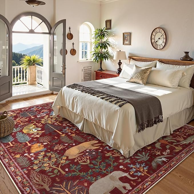 OJIA Animal Washable Rugs 8x10, Soft 8x10 Area Rugs for Living Room, Non Slip Bedroom Rug Under Bed Ultra-Thin Nursery Rug Large Carpet for Dining Room Office Playroom, Red