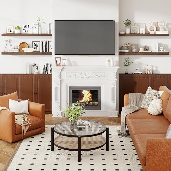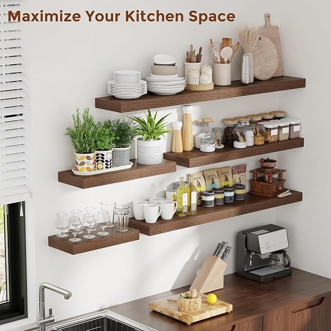 Heimlove 48 Inch Floating Shelves for Wall 8 Inch Deep Walnut Shelves Set of 2,Wall Mounted Rustic Wood Long Floating Shelf,Large Display & Storage Shelf with Invisible Brackets