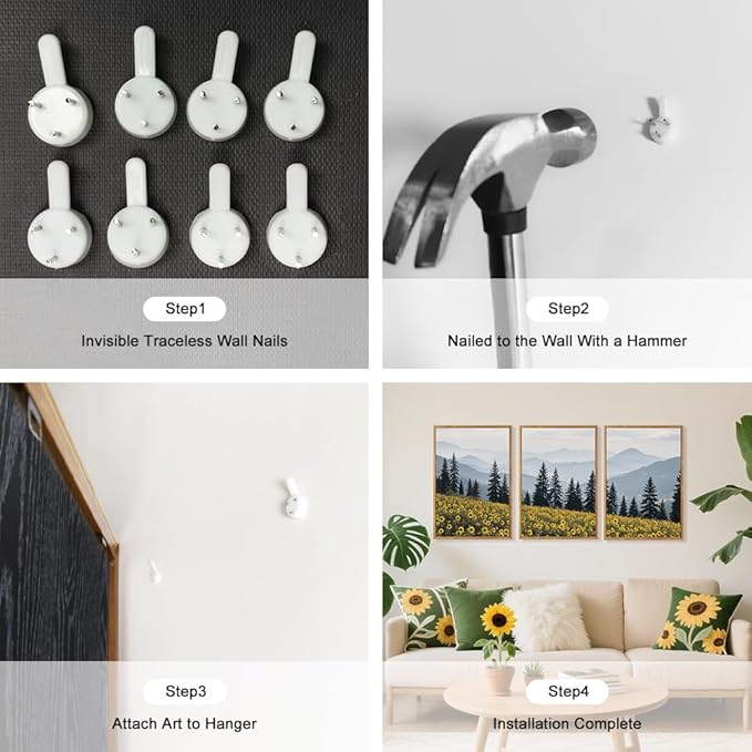 - 【Easy To Hang】The natural landscape framed picture set is easy to hang, ready to hang, it is finished with metal hooks and non-trace nails. It will only take about 5 minutes for you to hang it up.