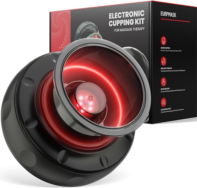 - [Maximize Recovery, Minimize Pain] Our smart cupping kit for massage therapy integrates heating, cupping, red light therapy, smart massage, and dynamic suction. Whether you're sore from workouts or stiff from sitting, it targets key areas to relieve pain and speed up recovery.