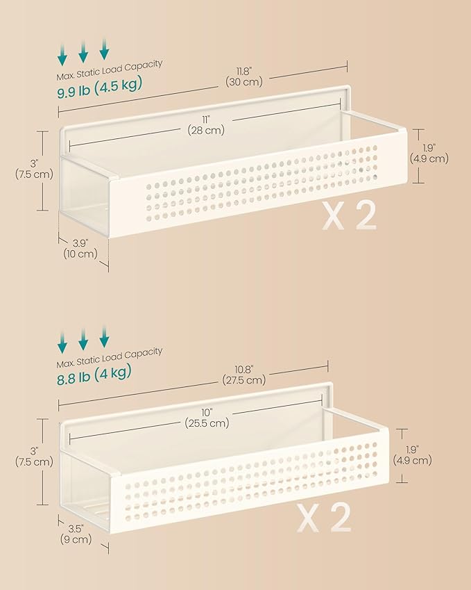SONGMICS Magnetic Spice Rack for Refrigerator, Set of 4, 2 Large and 2 Small Kichen Magnetic Shelves for Microwave, Washing Machine, Spice Organizers, No Drilling Needed, Cream White UKCS061W01