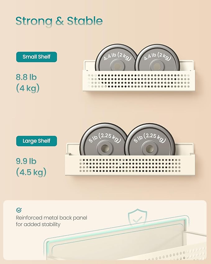 - Extra Strong Magnetic Hold: The powerful magnets (flux density: 700 Gauss) and the reinforced metal back panel give the spice rack secure support. The large shelf can support up to 9.9 lb, the small one up to 8.8 lb