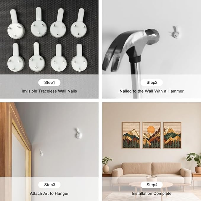 - 【Wooden Mountain Wall Art Set】This wooden mountain framed canvas wall art set executed in a charming nature style, captures mountains and trees, evoking an poetic atmosphere. Its modern organic aesthetic is reminiscent of nature charm. Utilizing this artwork as part of your decor will make your room full of poetry (Not-3D Effect).