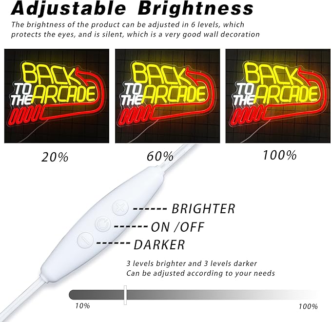 - Vintage Arcade Vibe:This neon sign captures the essence of the golden age of arcade gaming with its "BACK TO THE ARCADE" design. The vibrant lemon yellow, white, and red colors not only evoke nostalgia but also add a pop of color to your space.