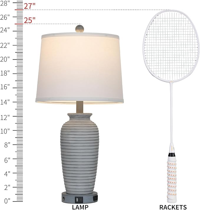 - Farmhouse Vintage Style Designs;This grey and white table lamp is made of polyresin with a raised surface that adds a touch of texture, finished in a natural linen white lampshade which is perfect combination of rustic and nature style that adds warm and elegance to your space. Our farmhouse jar table lamps not only illuminate your home, but are a unique handicraft. It’s aslo a perfect gift to your friend!
