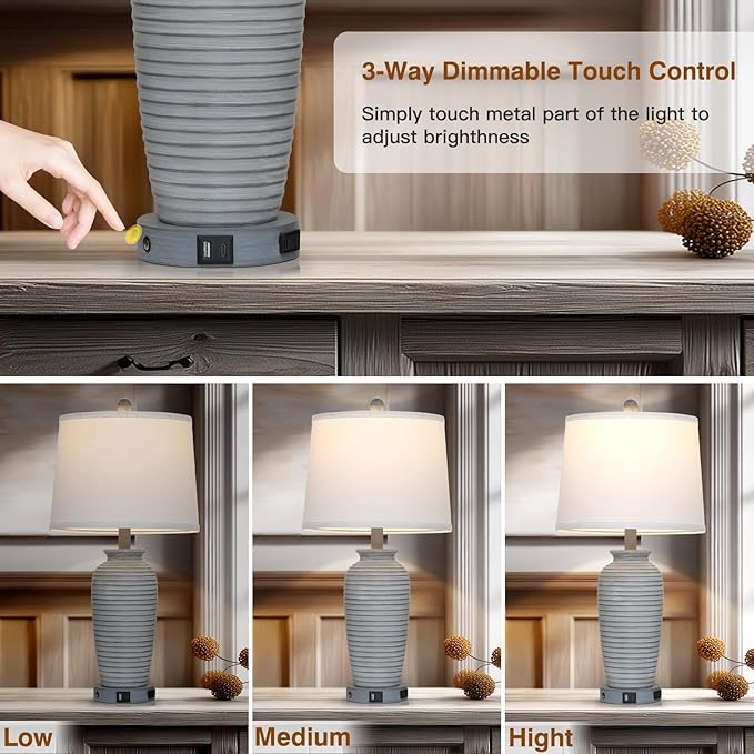 - 3-Way Touch Lamps:Our farmhouse table lamps are designed with three level brightness to meet your different needs for lighting. Just lightly tap on the built-in sensitive touch sensors to make quickly change brightness level, and response sensitively without delay, saving you from the trouble of fumbling with the switch in the dark. Low-grade is a perfect nightlight for sleeping or nursing, mid-grade is ideal for daily use, and high-grade is excellent for reading, studying and working