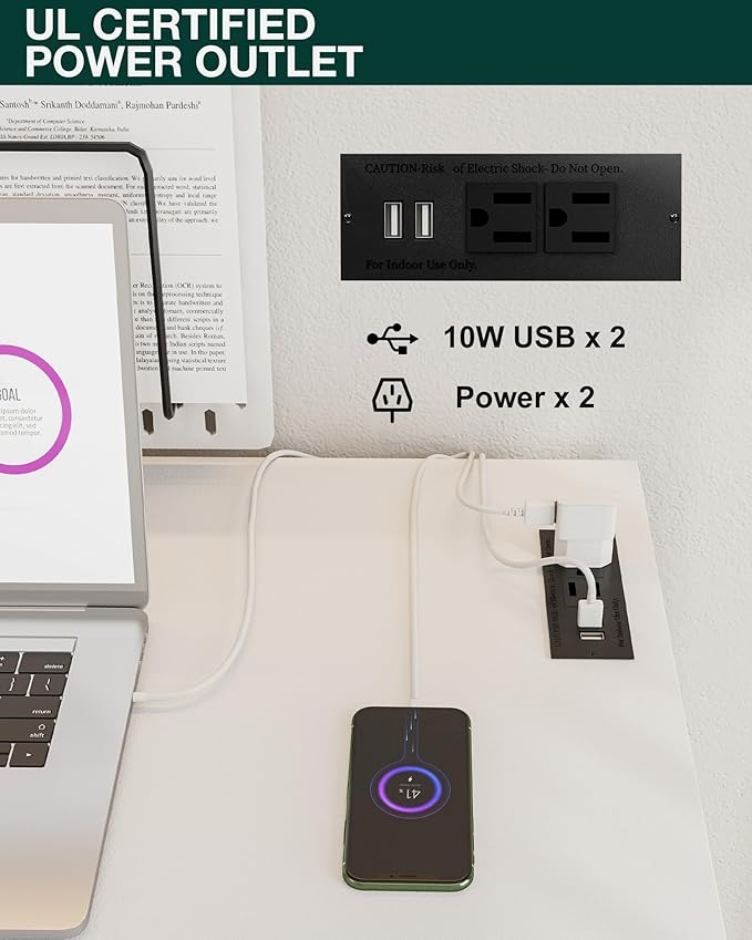 - πππ‘π§πππ₯ππ§ππ π£π’πͺππ₯ ππ¨π β ππππ₯ππ ππ©ππ₯π¬π§πππ‘π ππ§ π’π‘ππ β Stay powered and productive with 2 built-in AC outlets and 2 USB portsβperfect for laptops, phones, tablets, and more. No more messy extension cords or reaching for distant plugs; this smart design keeps all your devices charged and your workspace neat