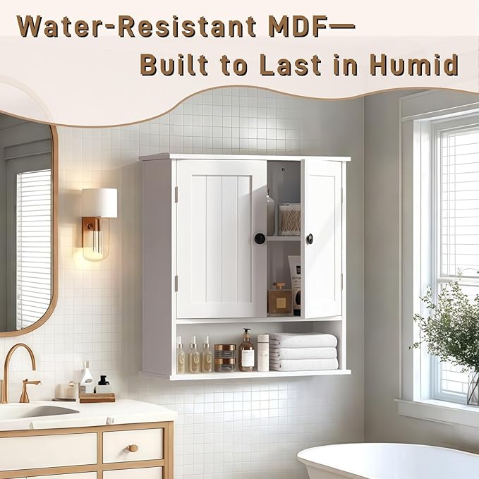 - Defy Humidity – Stay Pristine for Years! – Steamy showers? No problem! The wall cabinet moisture-proof MDF core + waterproof coating fights warping and stains. No more soggy shelves or peeling paint – just crisp white elegance.
