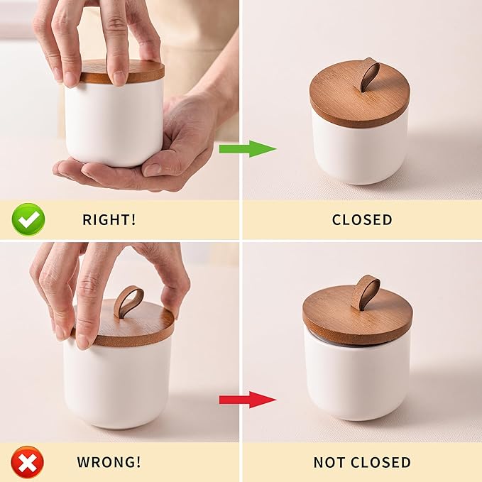 - Airtight Bamboo Lids for Freshness- -Each canister is topped with a bamboo lid that features a silicone seal, providing an airtight closure that helps preserve the freshness and quality of your stored items. Whether youβre storing dry foods or bathroom essentials, the airtight feature keeps moisture out and ensures your items stay fresh longer.
