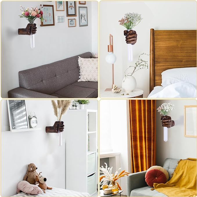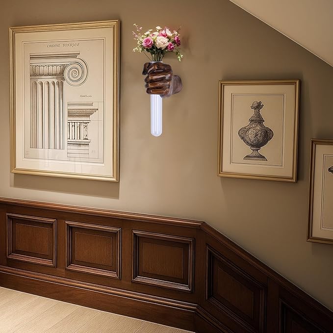 - Introducing our pride and joy, the Creative Wall-Mounted Sculpture featuring an exquisite hand-shaped design with a stunning test tube vase, adding a unique charm to your home decor.