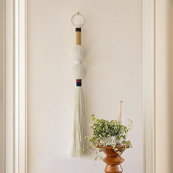 Macrame Wall Hanging Boho Decor Yarn Wall Art Small Sphericity Cotton Textile Tassel Hanging Fiber Art for Living Room Bedroom 27'' L x 2.3'' W