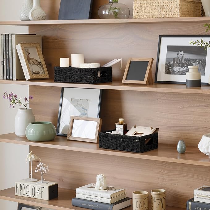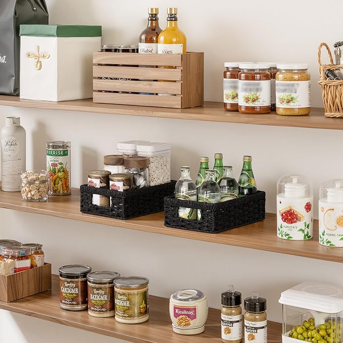 StorageWorks Small, Pantry Baskets, Wicker Storage Baskets for Organizing, Bathroom Shelves, Pantry Organizers and Storage, Black, 2-Pack