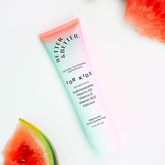 Better & Better Kids Toothpaste | Natural Hydroxyapatite Toothpaste Infused w/Calcium & Vitamins D, E, B12 | Fluoride & SLS Free for Sensitive Brushers | Watermelon Flavor | 3.4oz, 3 Pack