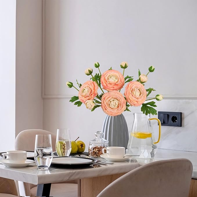- Easy Maintenance: Faux ranunculus flowers withstands indoor humidity and sunlight without watering, wilting, or shedding.These artificial flowers stems withstand indoor heat and humidity, staying pristine throughout multi-day celebrations
