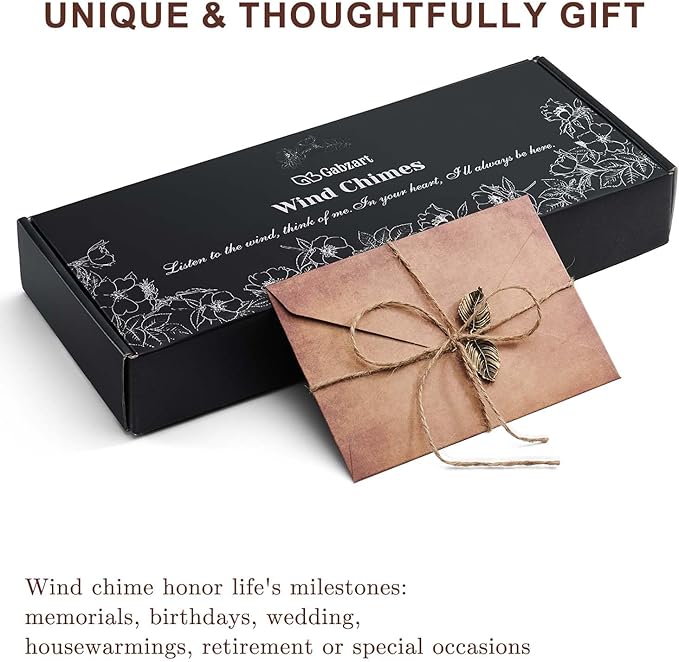 - Unique & Thoughtfully Gift: Beautifully gift boxed with a set vintage-inspired linen envelope, the wind chime honor lifeβs milestones: memorials, birthdays, wedding, housewarmings, retirement or special occasions. A heartfelt gift for moms, dads, grandparents, family or friends seeking solace or celebration.