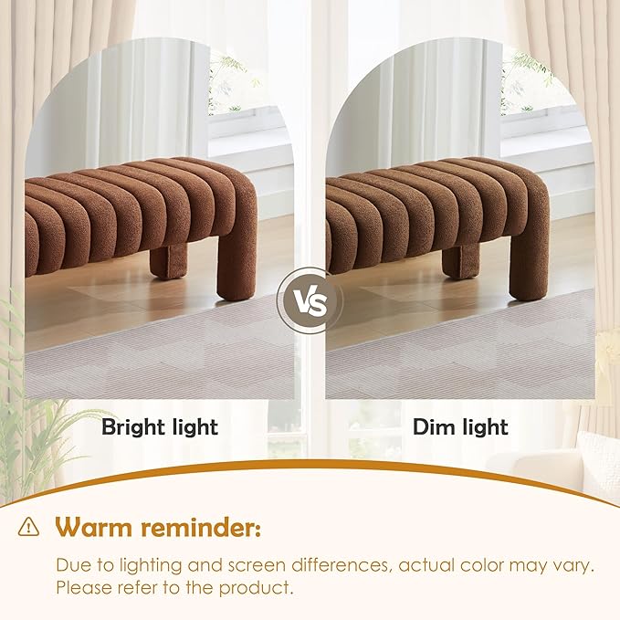 - 【Comfortable Experience】 This bedroom bench is made of delicate fabric and filled with high-density foam, providing excellent sitting feeling and comfort, allowing you to sit down or rest your feet after a busy day. Equipped with four adjustable foot pegs to ensure that the bench is stable and not wobbly during use, protect your floor from scratches and bring you a safer experience.