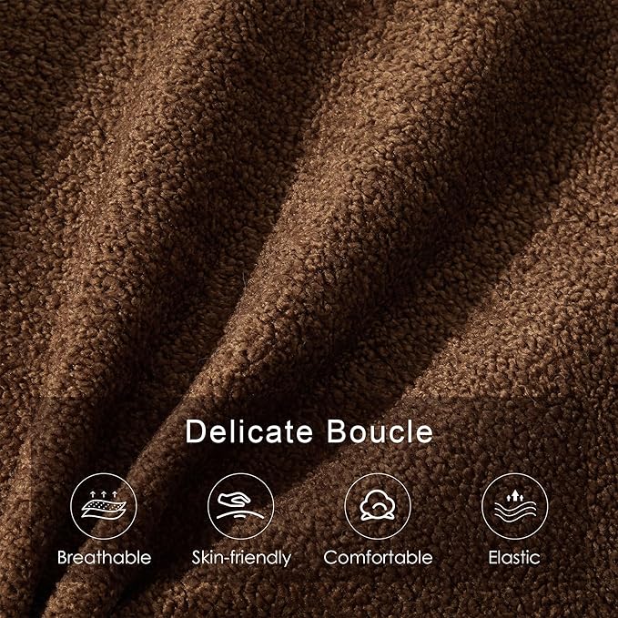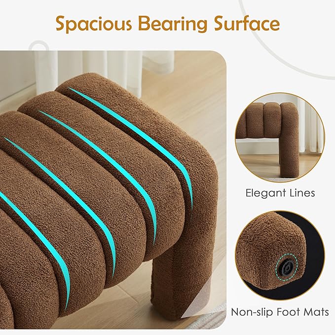 43.3" Bedroom Bench, Upholstered Entryway Bench, Modern End of Bed Ottoman with Solid Wood Legs and Adjustable Foot Pegs for Entryway, Dining Room and Living Room (Brown Boucle)
