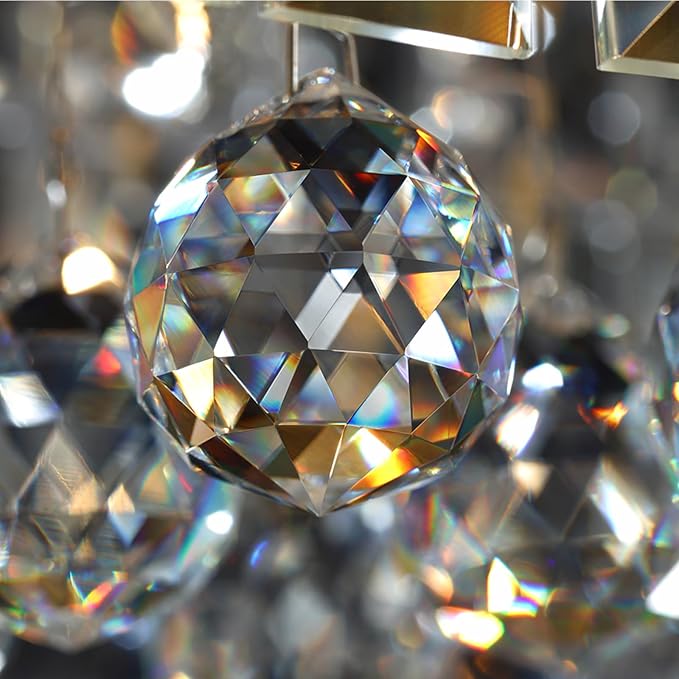 - BRIGHT LARGE CRYSTAL CHANDELIER: The flush mount chandelier is made of crystal clear K9 crystal, transparent and unadulterated, the light is soft and warm, not blinding, and the light color is gorgeous and colorful. Double reinforced stainless steel base, more secure and stable. Electroplated into gold color after many times of grinding and polishing. Smooth surface, not easy to scratch. Easy to clean, long service life