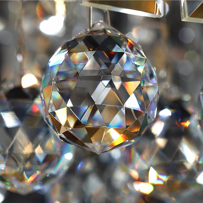 - ELEGANT CRYSTAL CHANDELIER: The beautiful raindrop ceiling light fixture blends classic style with modernity to create a gorgeous and elegant living space, ideal for your new home! The rectangle chandelier consists of a sturdy stainless steel frame and a sparkling K9 crystal raindrop shade, featuring geometric aesthetics while delivering a brilliant and captivating lighting effect