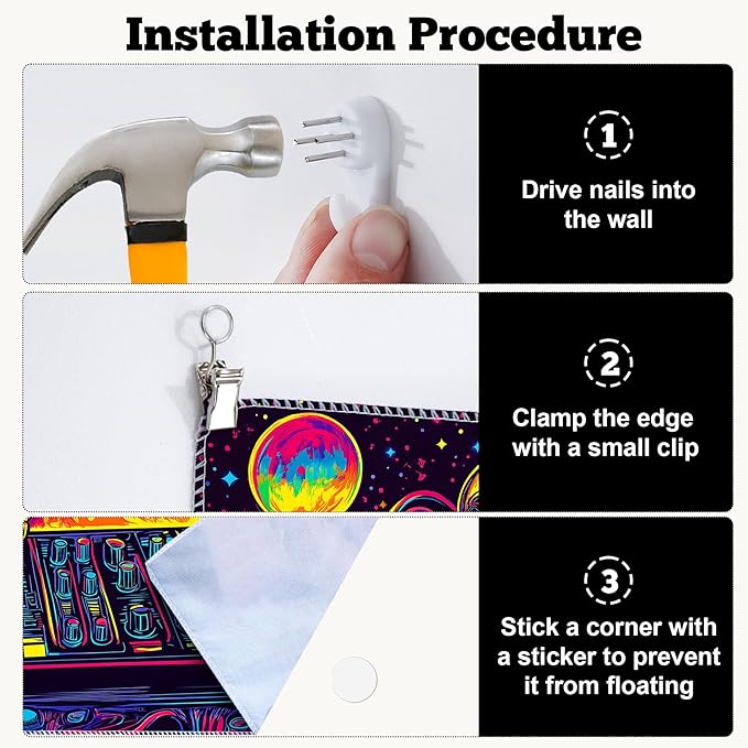 - Versatile Tapestry - With its durable materials and unique design, this blacklight tapestry can serve as a wall hanging tapestry, indie room tapestry, curtain tapestry, dorm room tapestry, ceiling tapestry, bedroom tapestry, glow-in-the-dark artwork or even a picnic blanket.