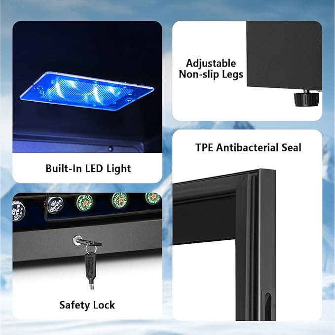- 【Great Gift Choice & Reliable Support】 This beverage cooler is equipped with 2 keys and 2 spare adjustable legs, with ETL and DOE double certification, and the drink fridge is the perfect choice for parties, housewarming, birthdays, and wedding gifts, suitable for family, friends, and loved ones. We also provide 24/7 professional customer service with a one-year worry-free support