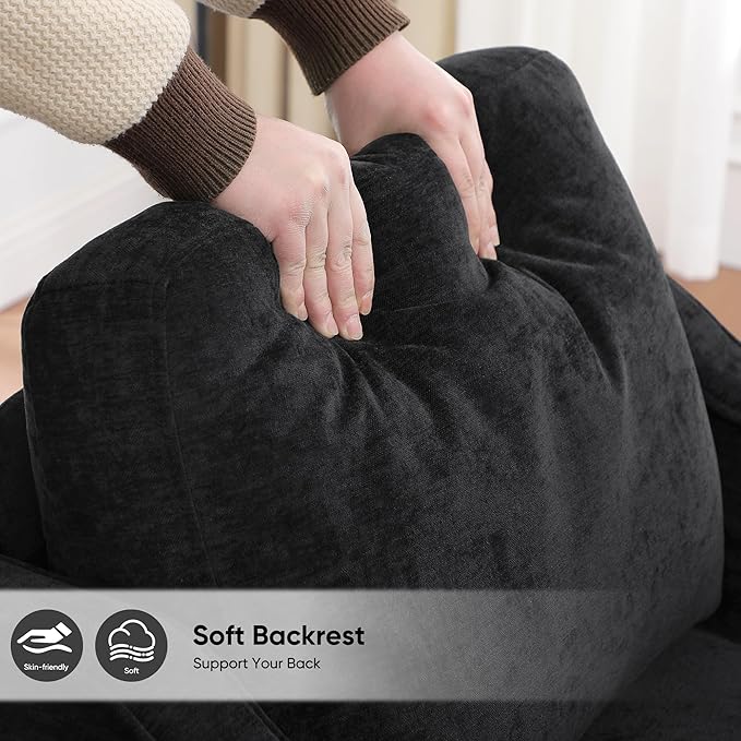- 【Comfortable Seating】The 5.7" thick seat of this living room chair are padded with high-density foam for superior comfort. The armchair with 115° seating angle offers enhanced support, reduces lumbar fatigue and ensures a comfortable seating experience. The armrests are perfectly aligned with your arms, providing your hands with plenty of support for long hours of reading, resting or relaxing.