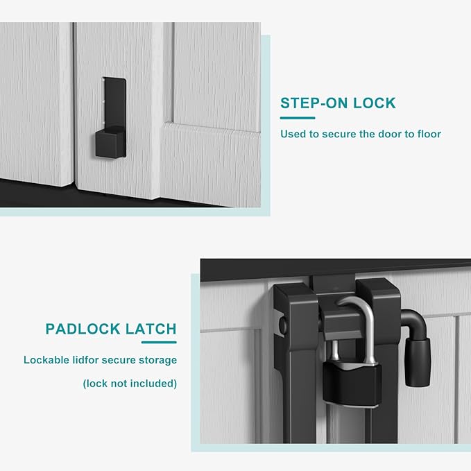 - Lockable:Our storage boxes feature a lockable design. Whether it's an expensive power tool, or personal outdoor gear, you can create a secure space in your outdoor area by simply locking the box. Giving you peace of mind that your belongings are protected from potential theft or unnecessary handling.