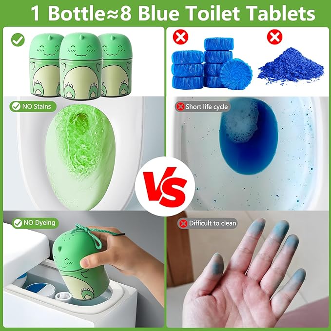 - NEW UPGRADE DESIGN:Toilet Tank Cleaner features a convenient bottle design with a built-in string rope, making it easy to handle and place, which different from tablet types, there’s no more need for messy handling and dirty hands keeping your bathroom clean and fresh. In addition, each bottle is individually wrapped for easy storage and moisture protection, ensuring freshness and optimal performance.