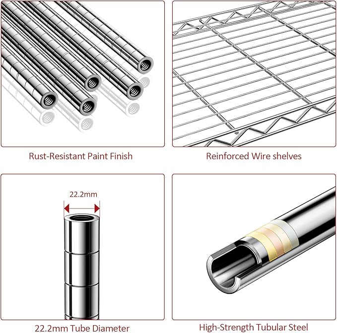 - 【Sturdy Carbon Steel – Built to Last】Crafted from heavy-duty carbon steel and reinforced with thick 22.22mm pipes, the IZEUK 5-tier shelving unit (17.7"" D x 47.2"" W x 76.7"" H) delivers exceptional strength and stability. Each shelf holds up to 350 lbs (on leveling feet) or 120 lbs (on wheels), with a total weight capacity of 1750 lbs on feet / 600 lbs on wheels, making it ideal for both stationary and mobile storage needs.