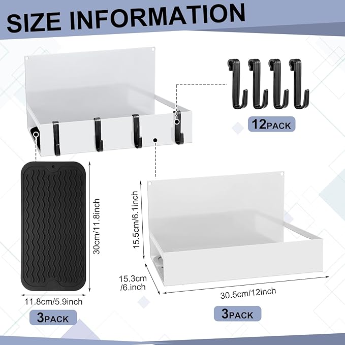 - Included Components : 12 x Hanging hooks, 3 x Black non slip pads, 3 x Magnetic tool box trays