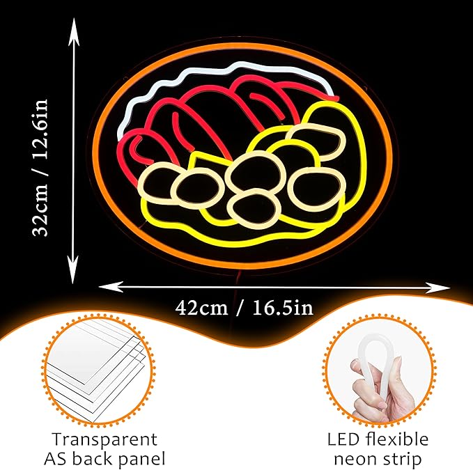- Exquisite quality: The curry beef led sign is made of led flexible light strips and acrylic back plates. It adopts an advanced electrode system, with low voltage, low power consumption and no risk of glass breakage.